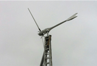 Aerogenerador de 5,5 kW en instalación híbrida fotovoltaica (30 kW) – eólica (5,5 kW) conectada a la red. Costa de Huelva